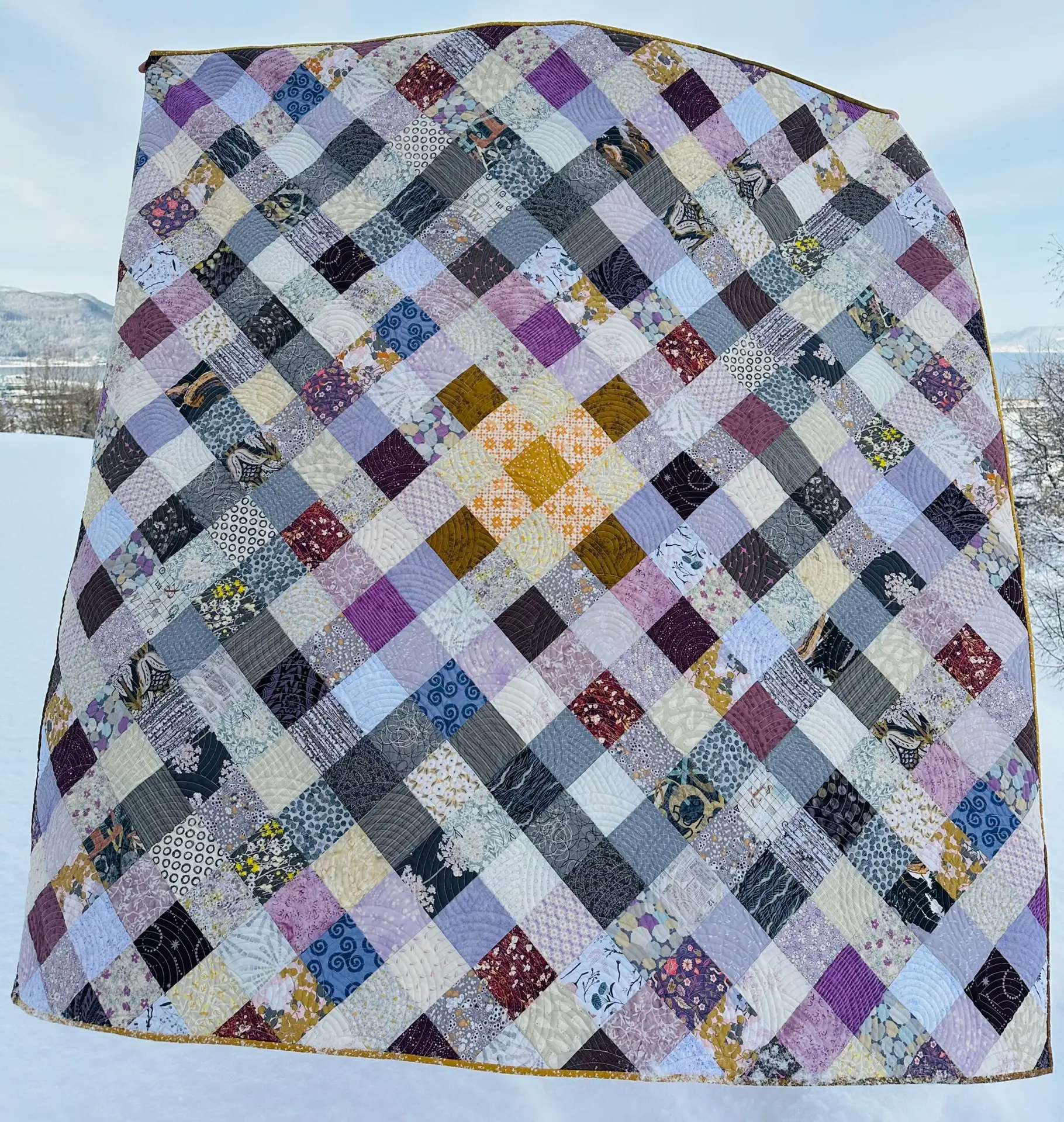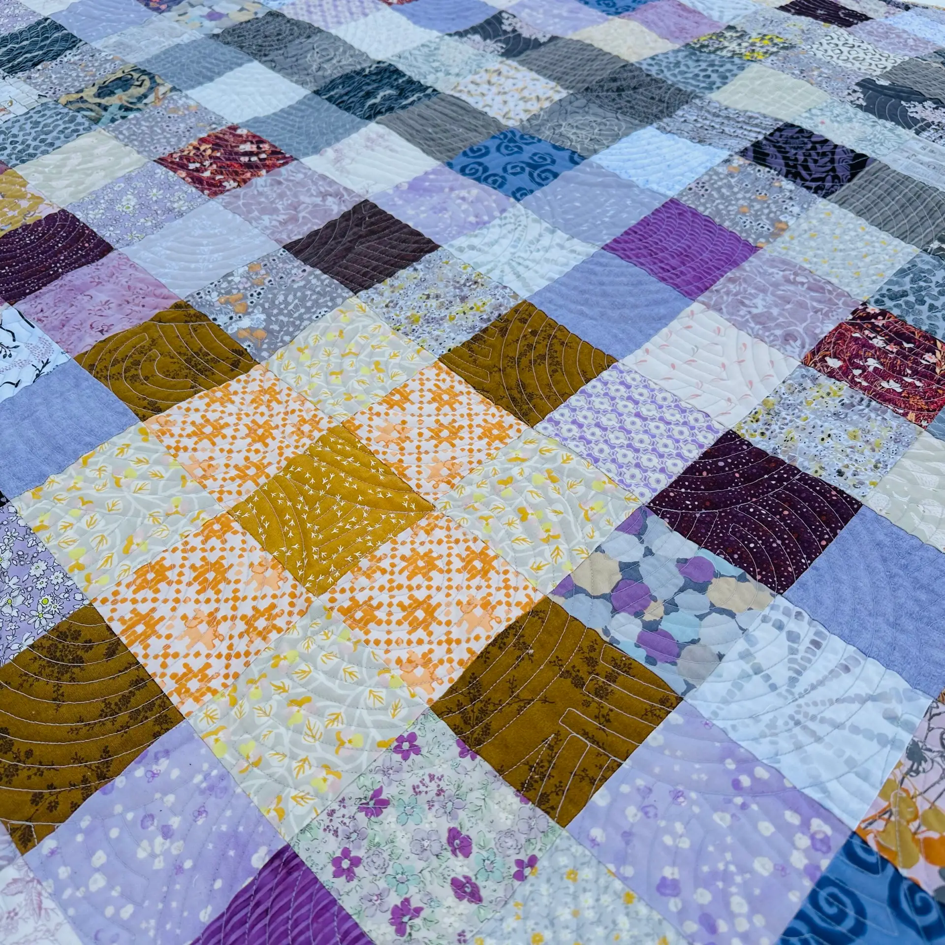 • Stoffer: warm and happy mix of greys, lilacs, and golds from my ever growing mountain of scraps!